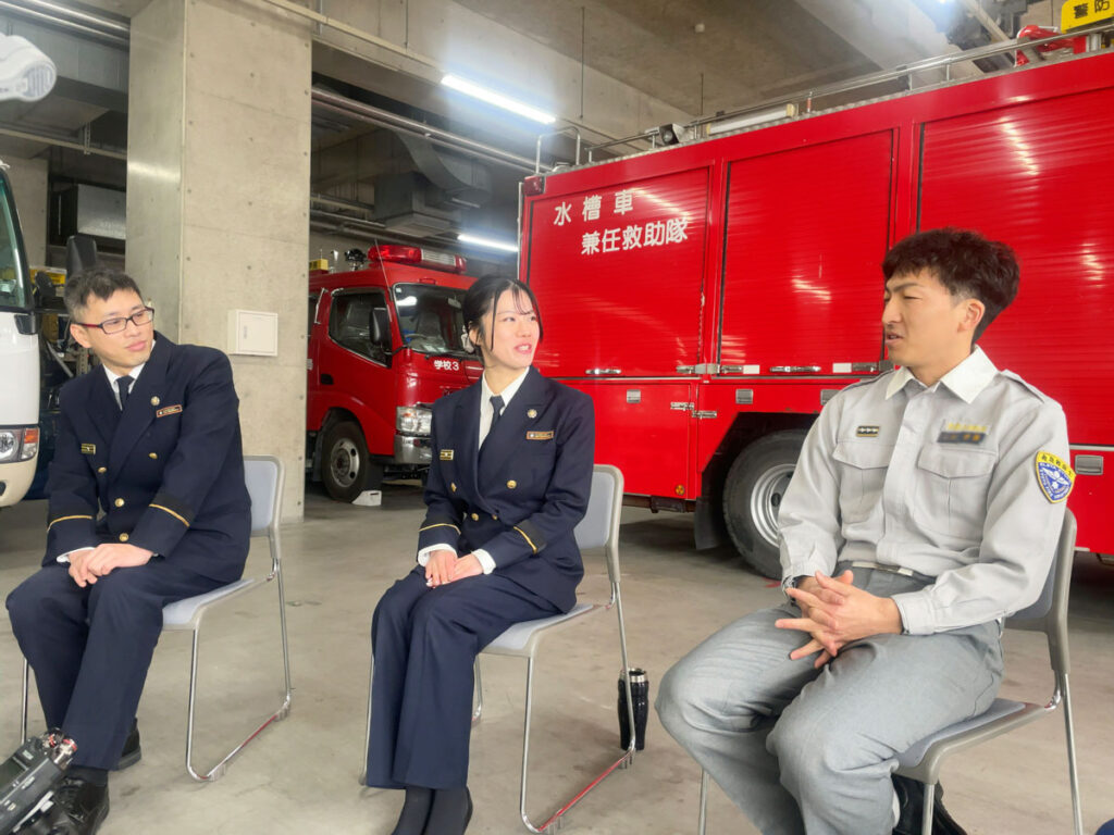 座談会に先立って、Kyosho Nextの皆さんから教えていただいていたのが「一般の人にとって消防士といえば、現場の消防隊員をイメージすると思うけれど、他にさまざまな業務がいっぱいあるし、運動がそこまで得意じゃなくても大丈夫な仕事がたくさんありますよ」ということでした。