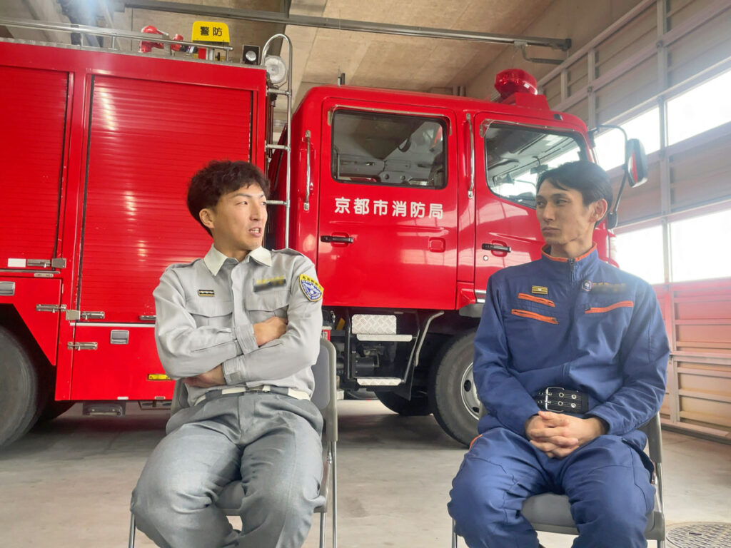 この素晴らしき職業を、これから就職を控えている方や転職を考えている方に、ぜひ紹介したと思い立ち、京都市消防局様の全面的な協力のもと、本サイト「Kyoto Love. Kyoto」が座談会を企画しました!また、市民の方にも私たちの安全を守ってくれる消防というお仕事の知られざる一面をご覧いただきたいと思います。ぜんぶ本音でお送りします!!