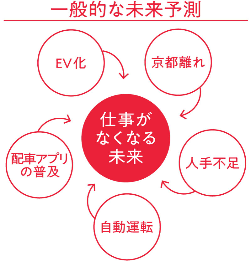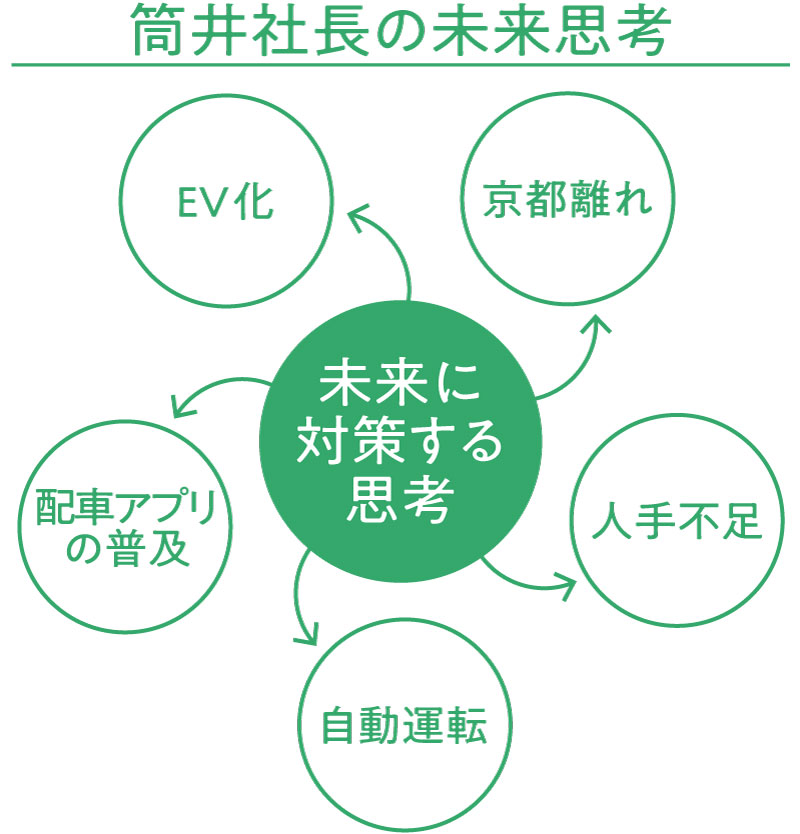 「自動運転が来るから運転手の仕事がなくなる」と考えるのが一般の未来予測。 「自動運転が来るからこそ、選ばれる理由を人間に特化させる」と設計するのが筒井社長の思考。
